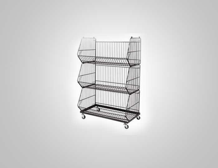 These racks are suited both for areas with small floor space of a few square meter or large floor spaces of the very extensive markets. Notable for their sturdy construction, large shelf space.